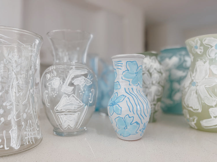 HEAD IN THE CLOUDS HAND PAINTED FLORAL BLUE VASE