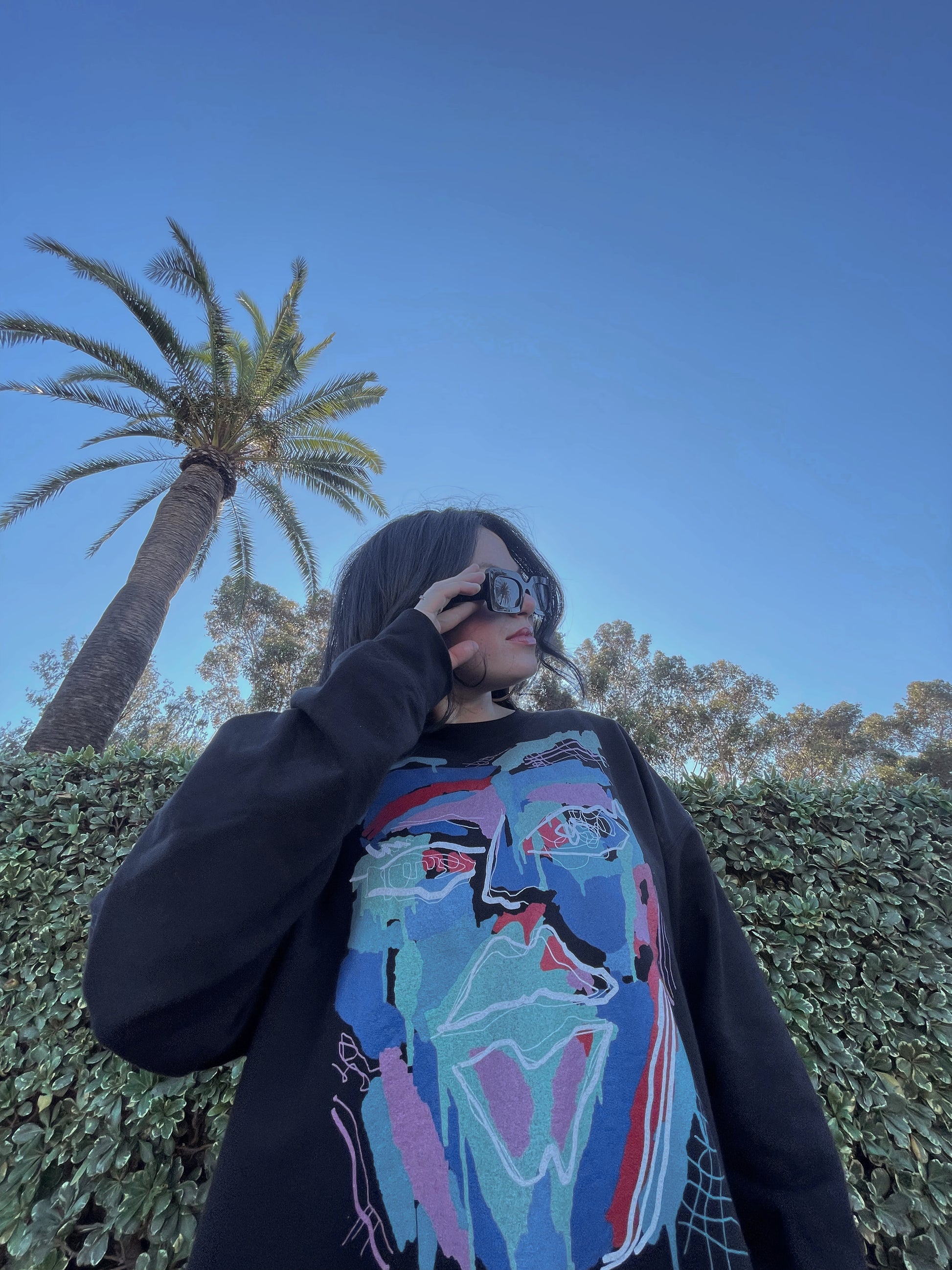 ORIGINAL ARTWORK! ON FRONT OF CREWNECK SWEATER.