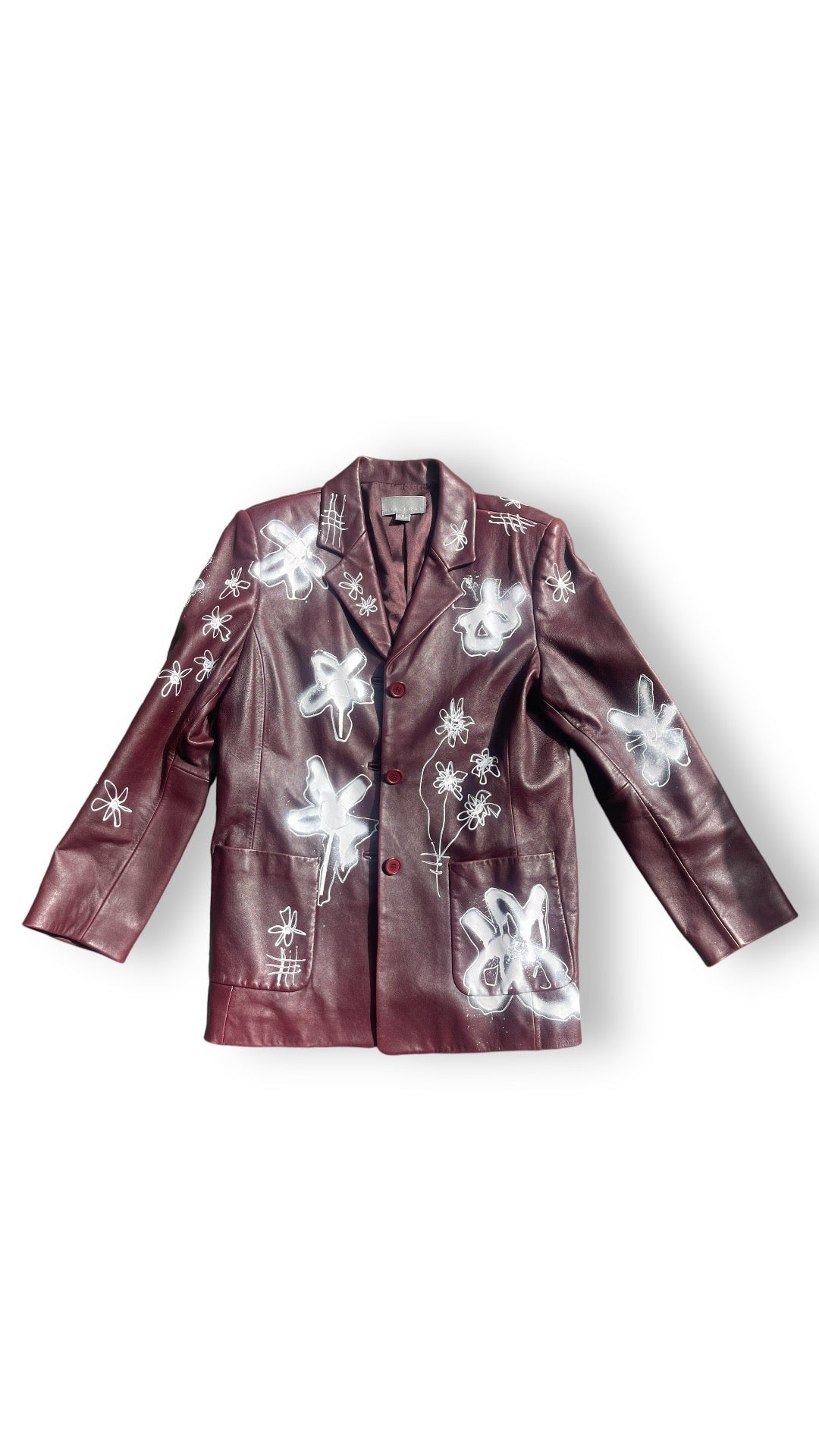 hand-painted 1 of 1 burgandy genuine leather blazer