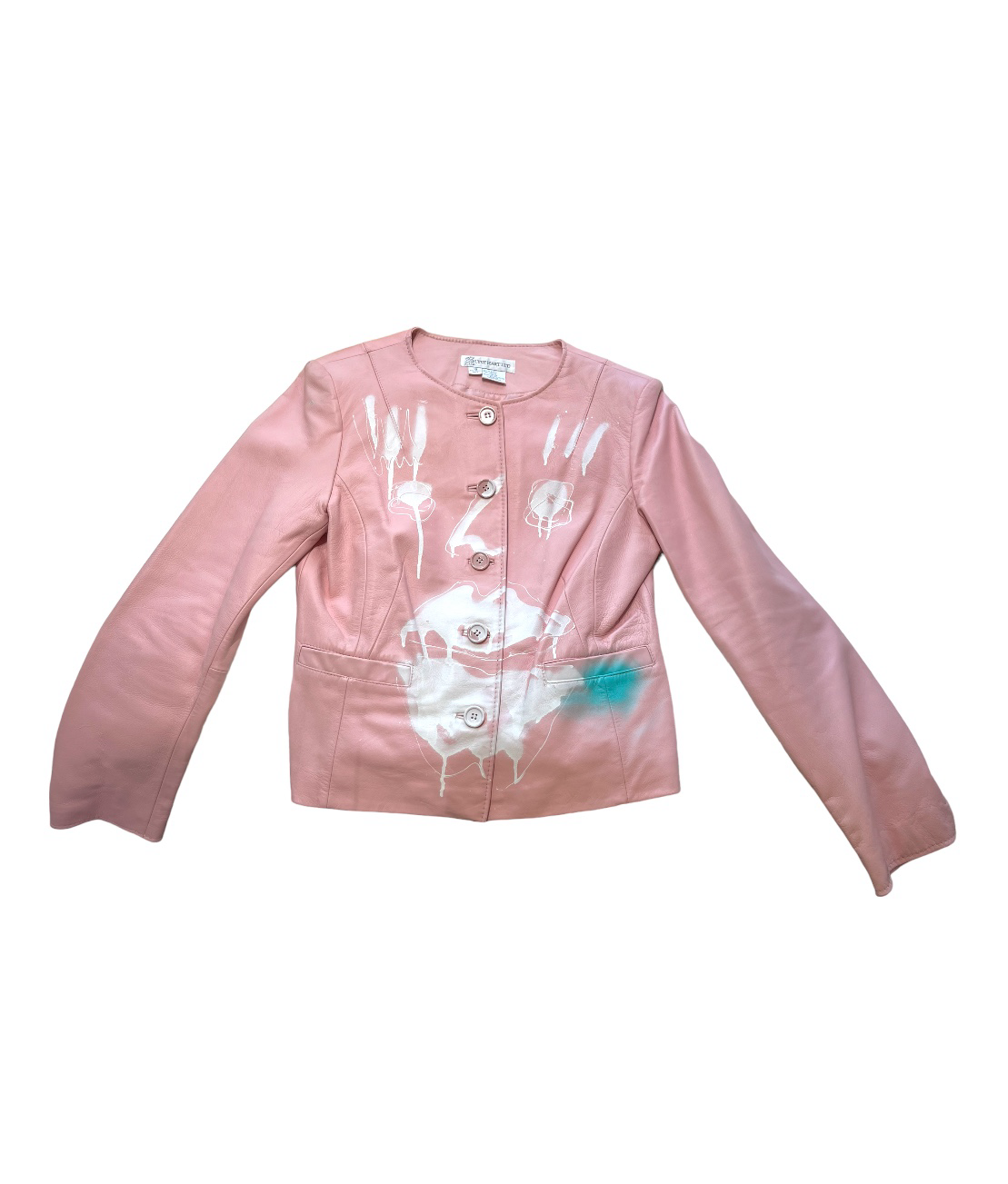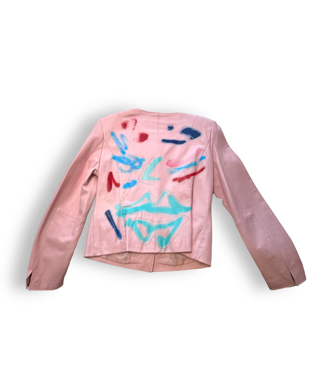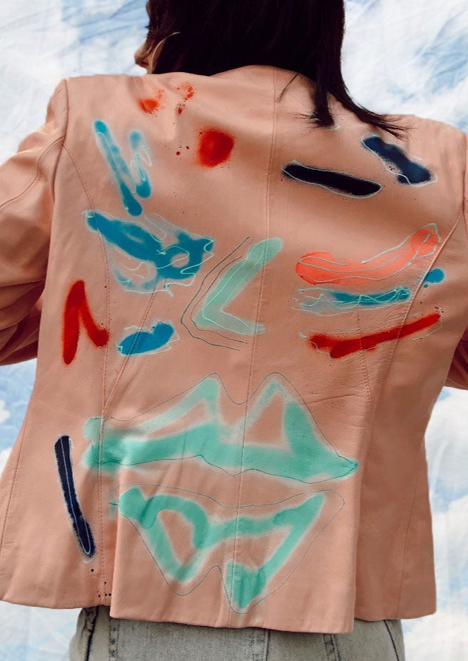 blush pink customized up-cycled leather jacket.