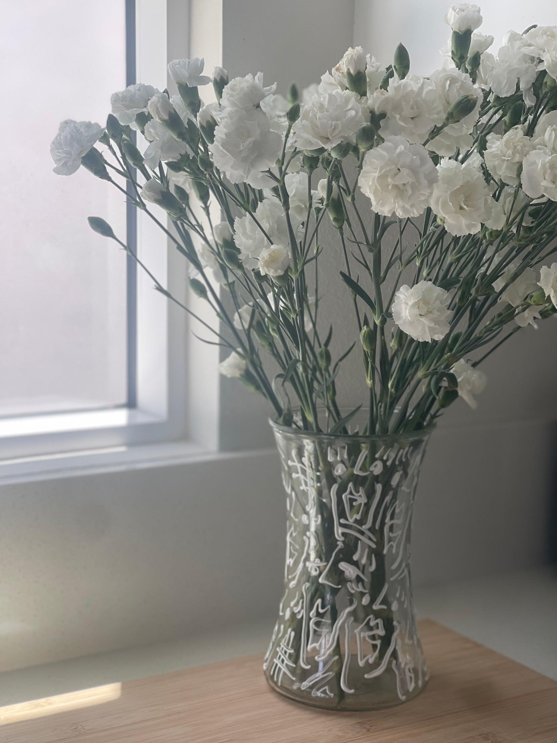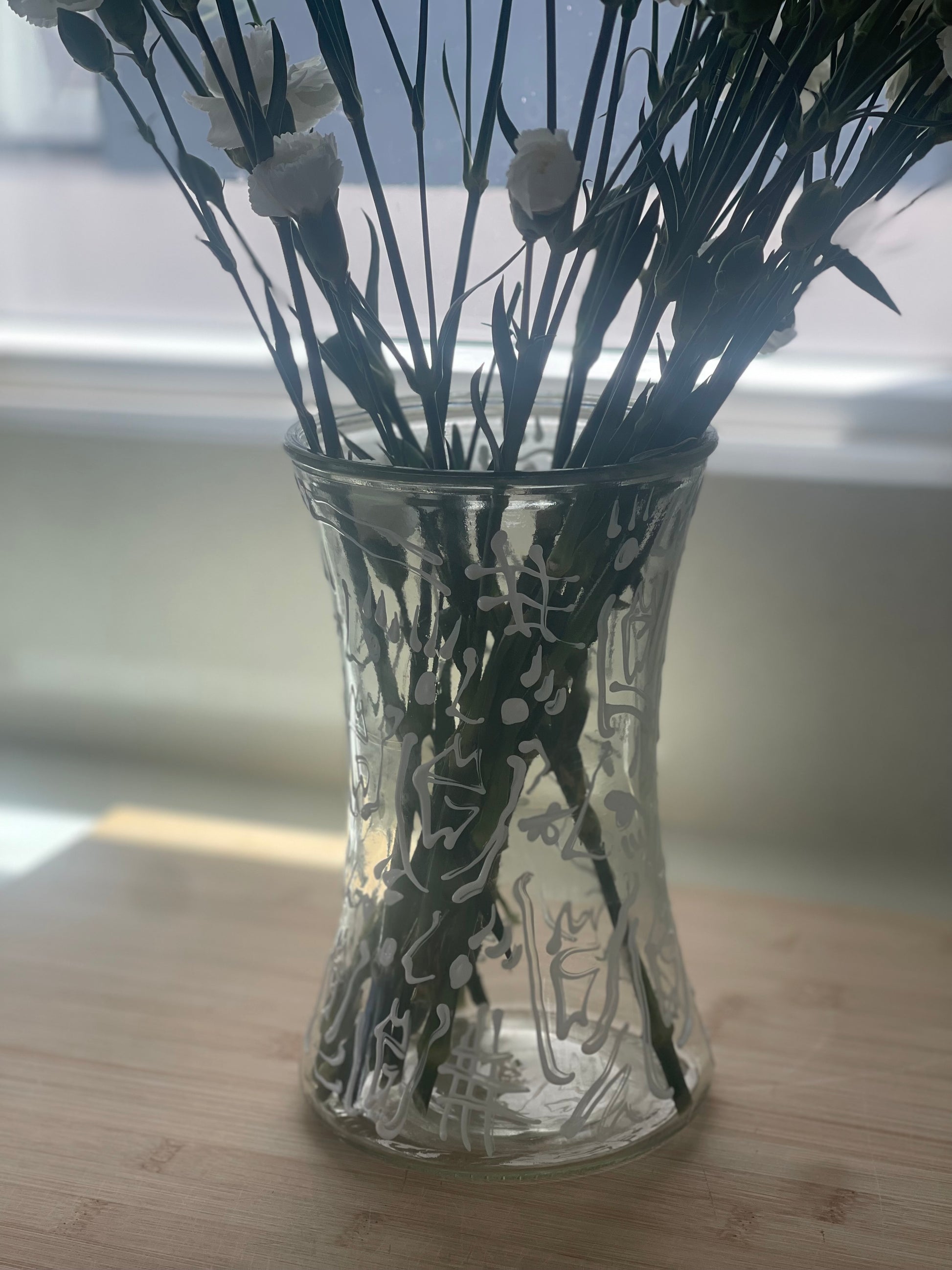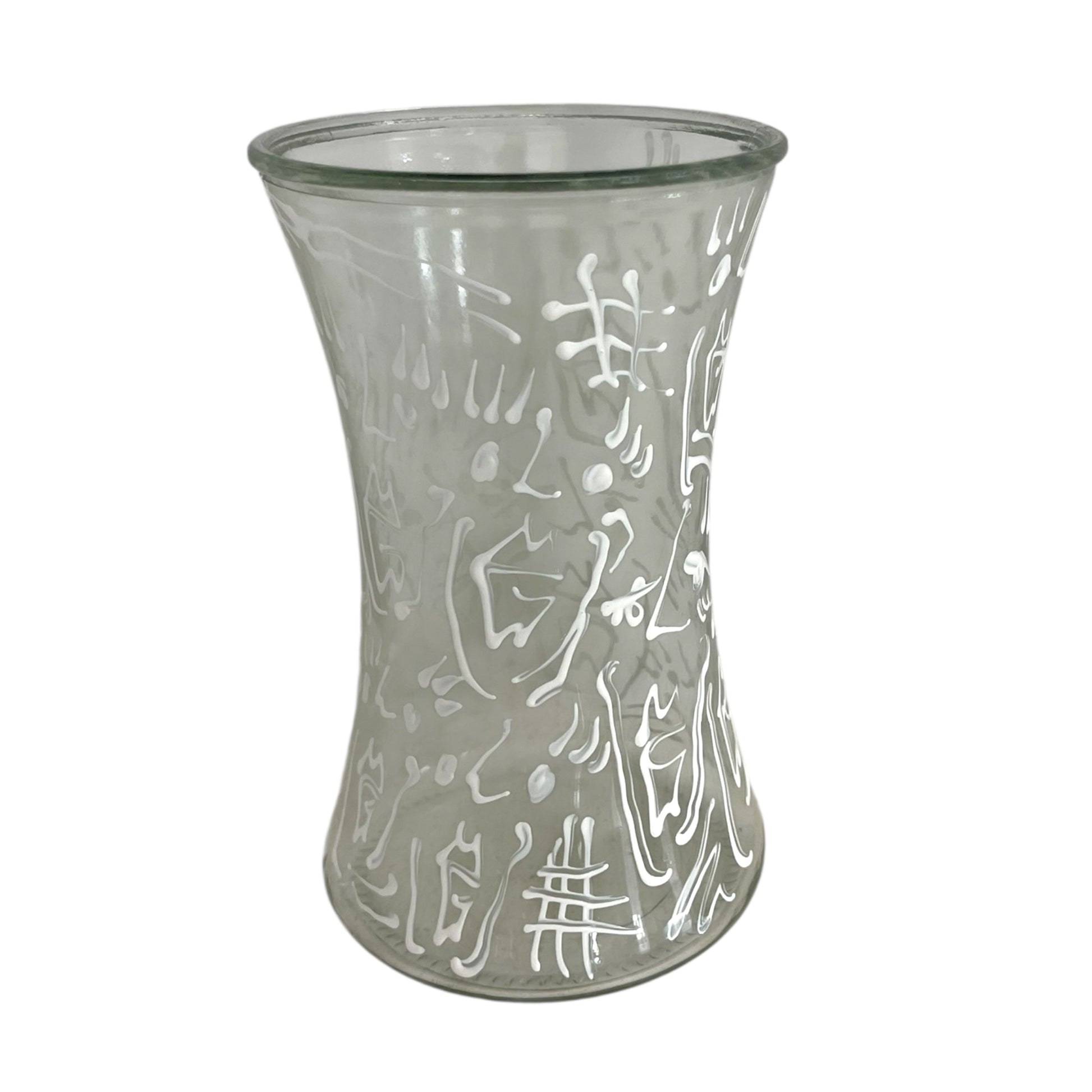 Enhance your living space with this unique hand-painted glass vase, meticulously crafted on a clear large-sized vase. Each piece is one of a kind, designed to bring an immediate touch of sophistication to your decor.