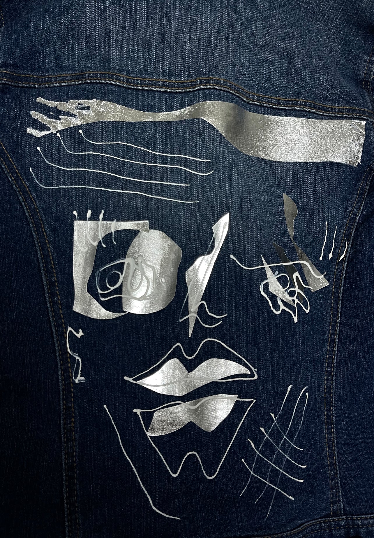 hand-painted, hand crafted denim jacket. 1 of 1 design on back. plain on front. pre-loved.
