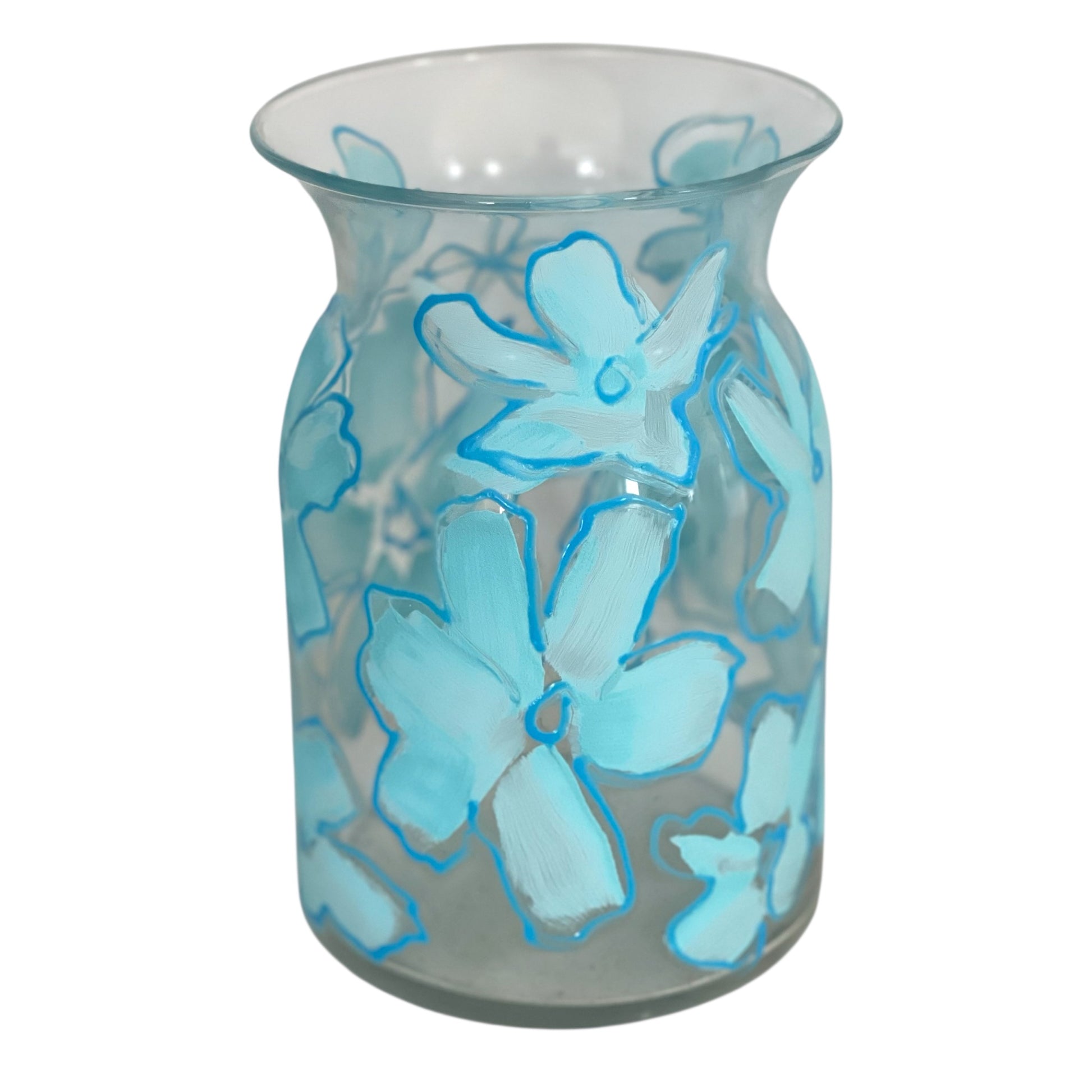 HEAD IN THE CLOUDS HAND PAINTED FLORAL BLUE VASE