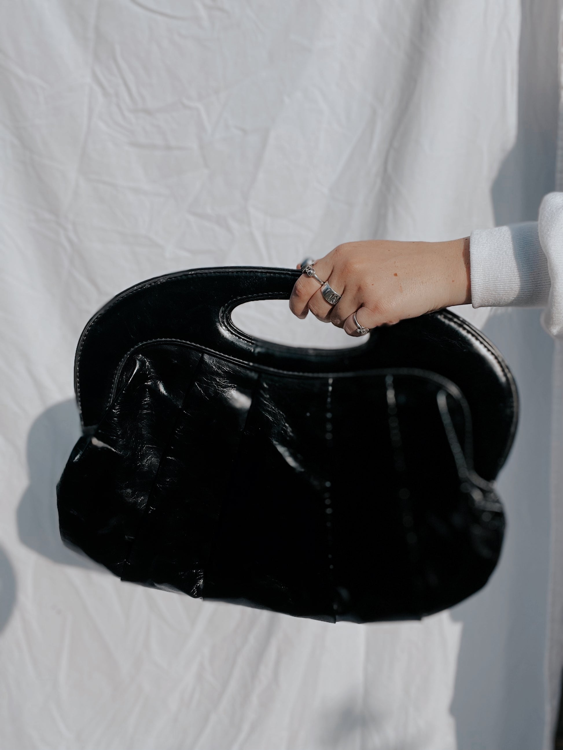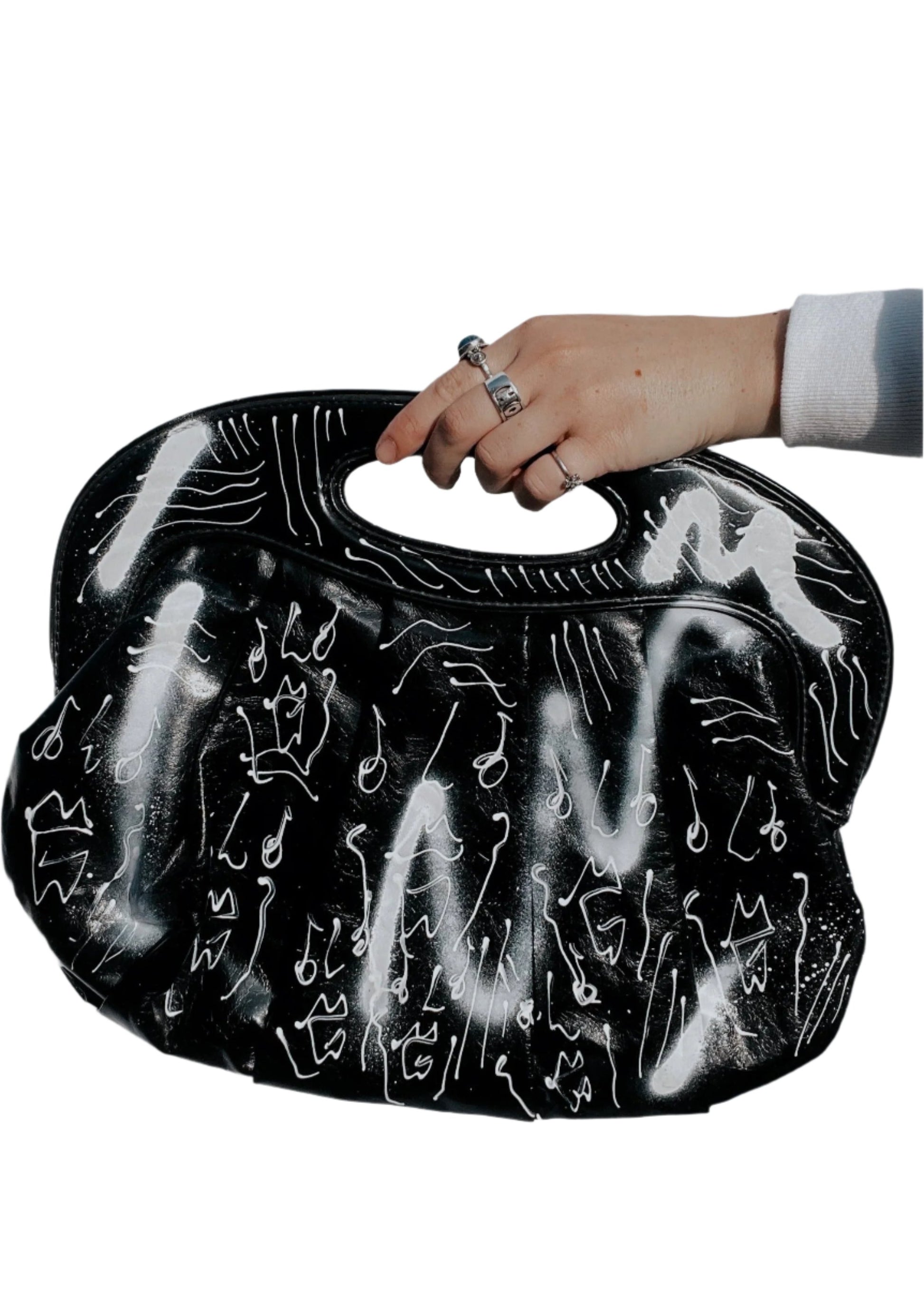 custom painted black handbag. UP-CYCLED goodness.