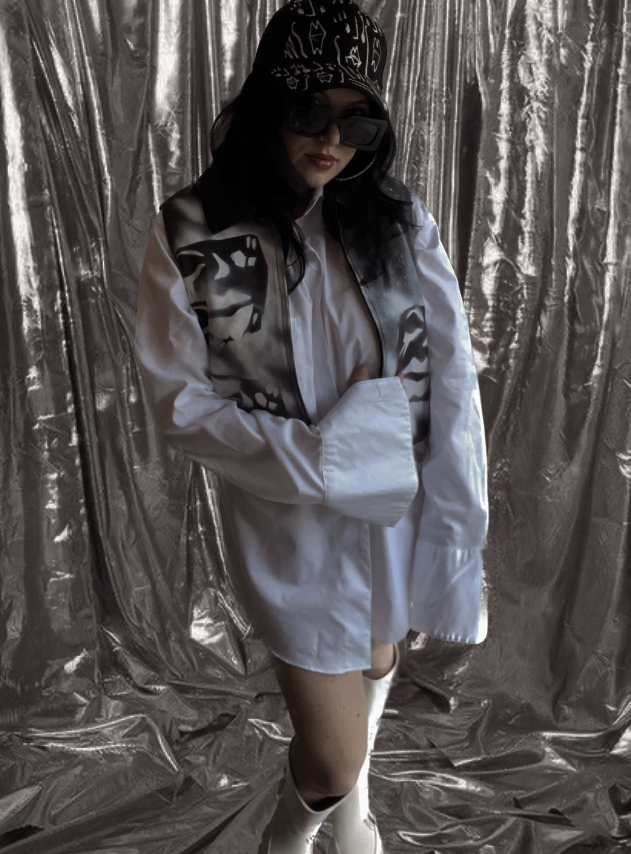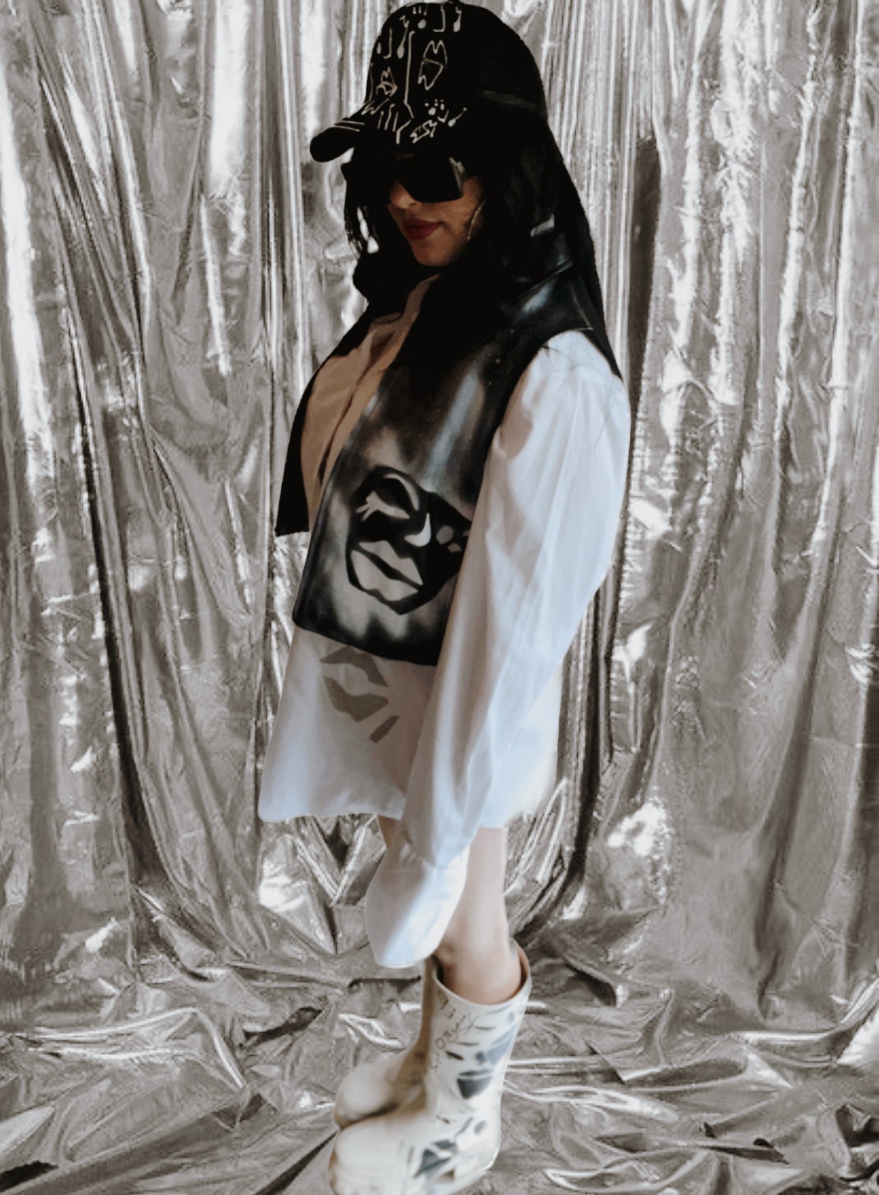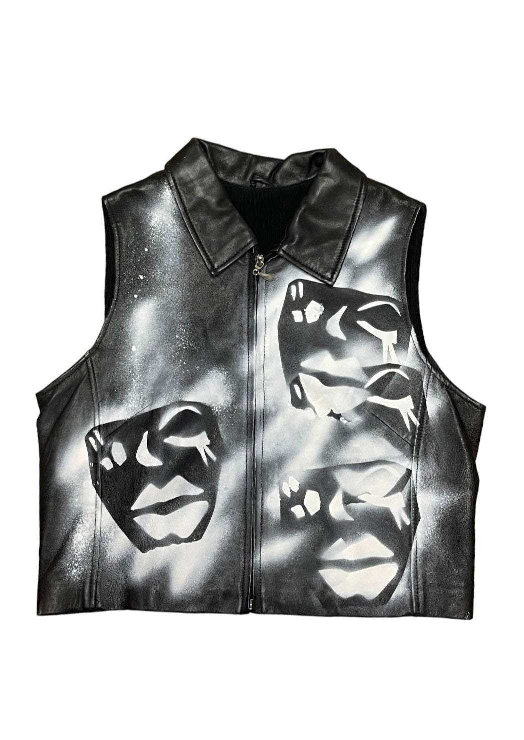 hand-painted leather black and white vest.
