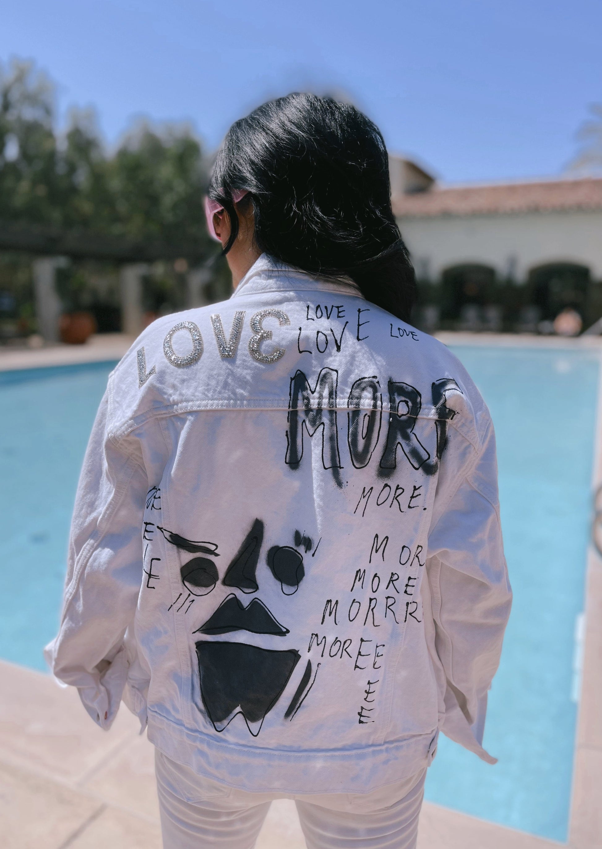 hand-painted one of one white denim jacket